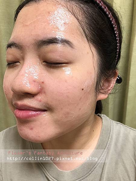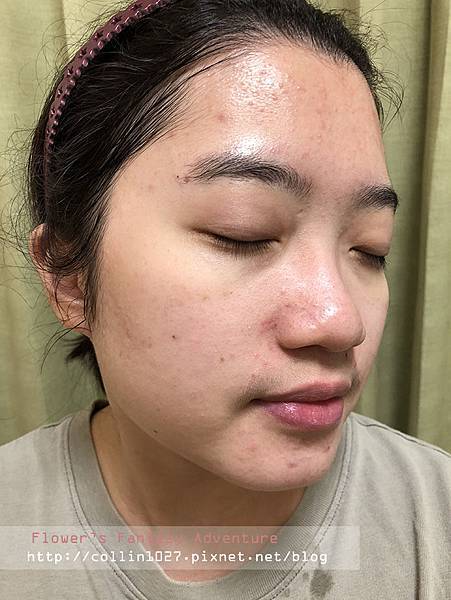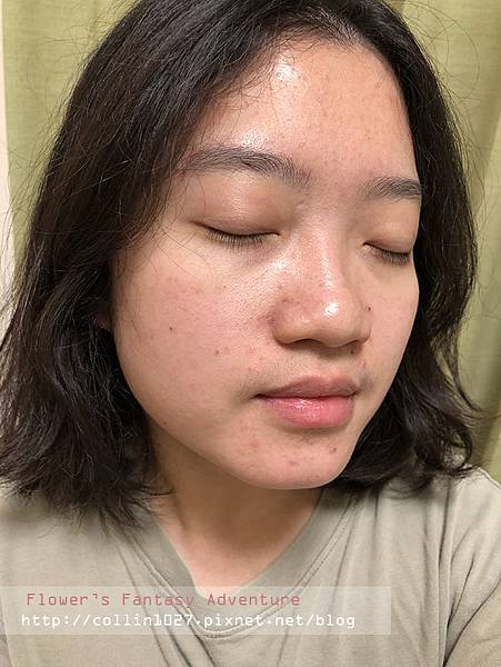 雖然前面因為抗痘產生乾燥跟泛紅的痘痘,所以沒辦法敷完立刻恢復保水跟彈性,照片紀錄不是很明顯,但本身感受真的舒緩很多